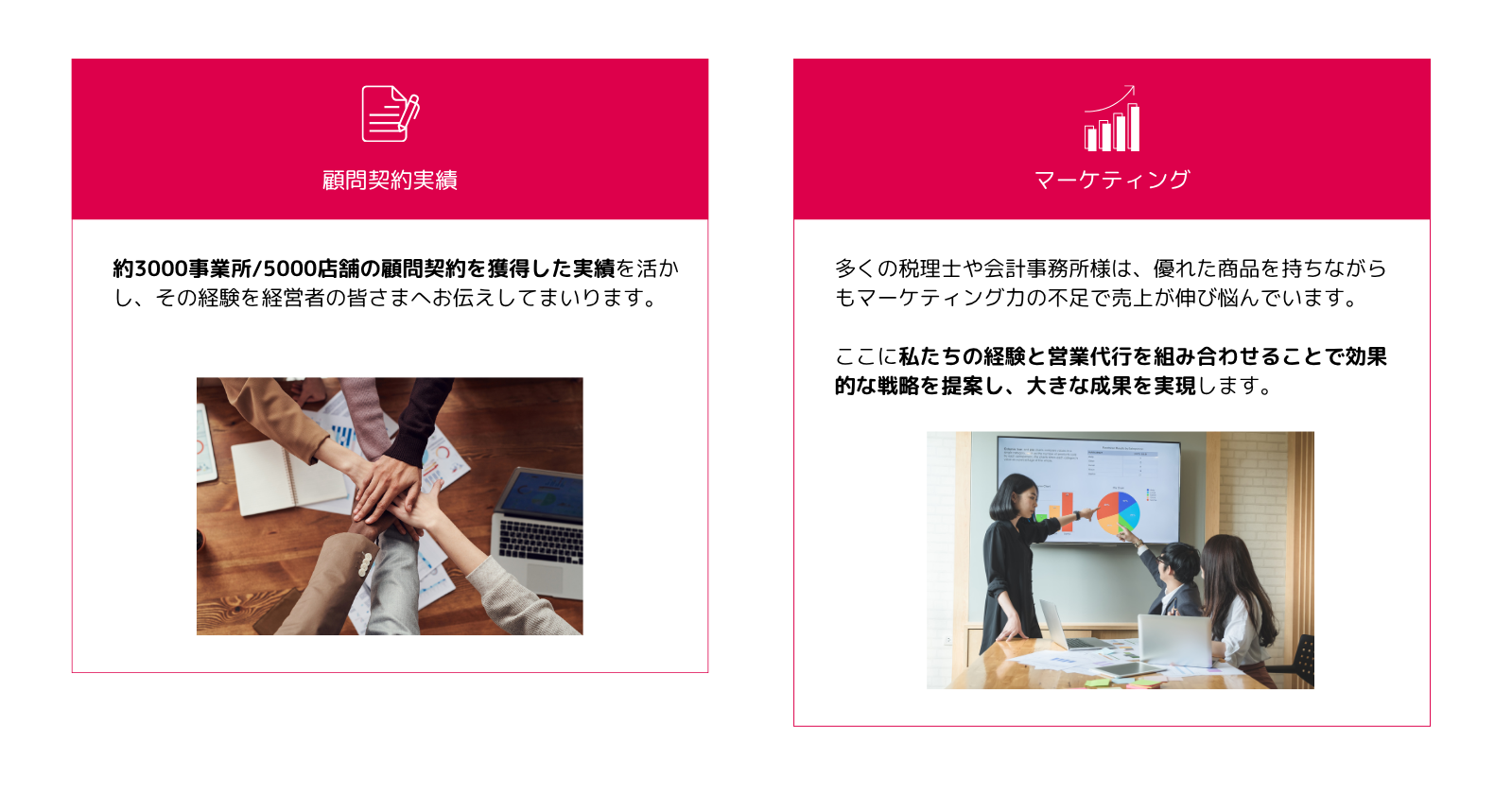 営業代行という形で、人を1人新たに雇用するよりも安く早く、効果的なマーケティングを実施します。